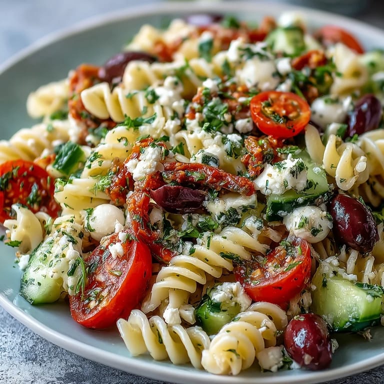 Save to Pinterest The popping sound of pasta tumbling into boiling water always reminds me of those early summer evenings when sunlight still lingered in the kitchen. I first threw together this salad on a whim after noticing my fridge was brimming with colorful vegetables needing attention. The fragrance of chopped parsley and oregano mingled with bright tomatoes brought an instant spark to my mood. It’s become my go-to when I want something crisp, flavorful, and impossible to mess up—especially on warm days when turning on the oven is out of the question.